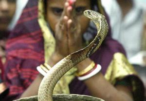 О змеях в Индии сложено бесчисленное количество легенд и сказаний, но с ними связывают и самые неожиданные приметы. Считается, что змея олицетворяет вечное движение, выступает воплощением души предка и хранительницей дома. Вот почему знак змеи индусы наносят по обе стороны входной двери. С той же охранительной целью крестьяне южноиндийского штата Керала содержат во дворах небольшие серпентарии, где живут священные кобры. Если семья переезжает на новое место, то непременно забирает с собой и всех змей. В свою очередь те каким-то чутьём отличают хозяев и никогда их не кусают.